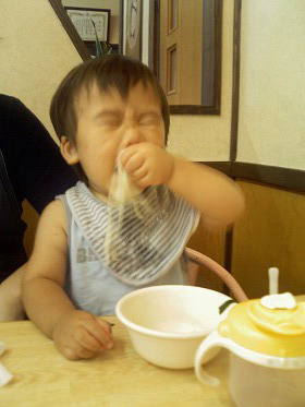 伸太郎 2004年 9月 (1歳4ヶ月) ![]() 福岡空港へ飛行機見に行きました。飛行機が下りてくる合間、伸太郎は砂遊びです。 ![]() 最近はよくだだこねます。でも「日本むかしばなし」見ているときは大人しいです。 ![]() じーじ、ばーばの結婚記念日のお祝いです。伸太郎はお子様ランチ平らげました。 でも野菜は全部新米おやじが伸太郎から食べさせられました(汗) 手前の海老の入ったコップは、前菜の「海の幸カクテル」です。めちゃうま。 |